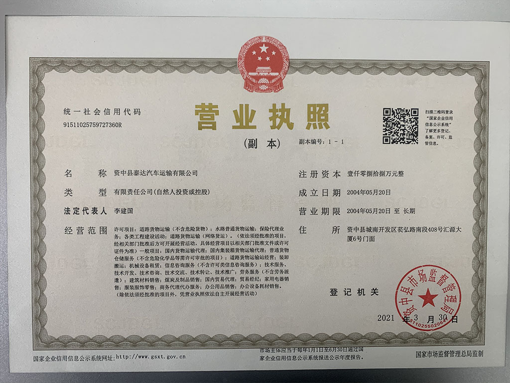 資中縣泰達(dá)汽車運輸有限公司